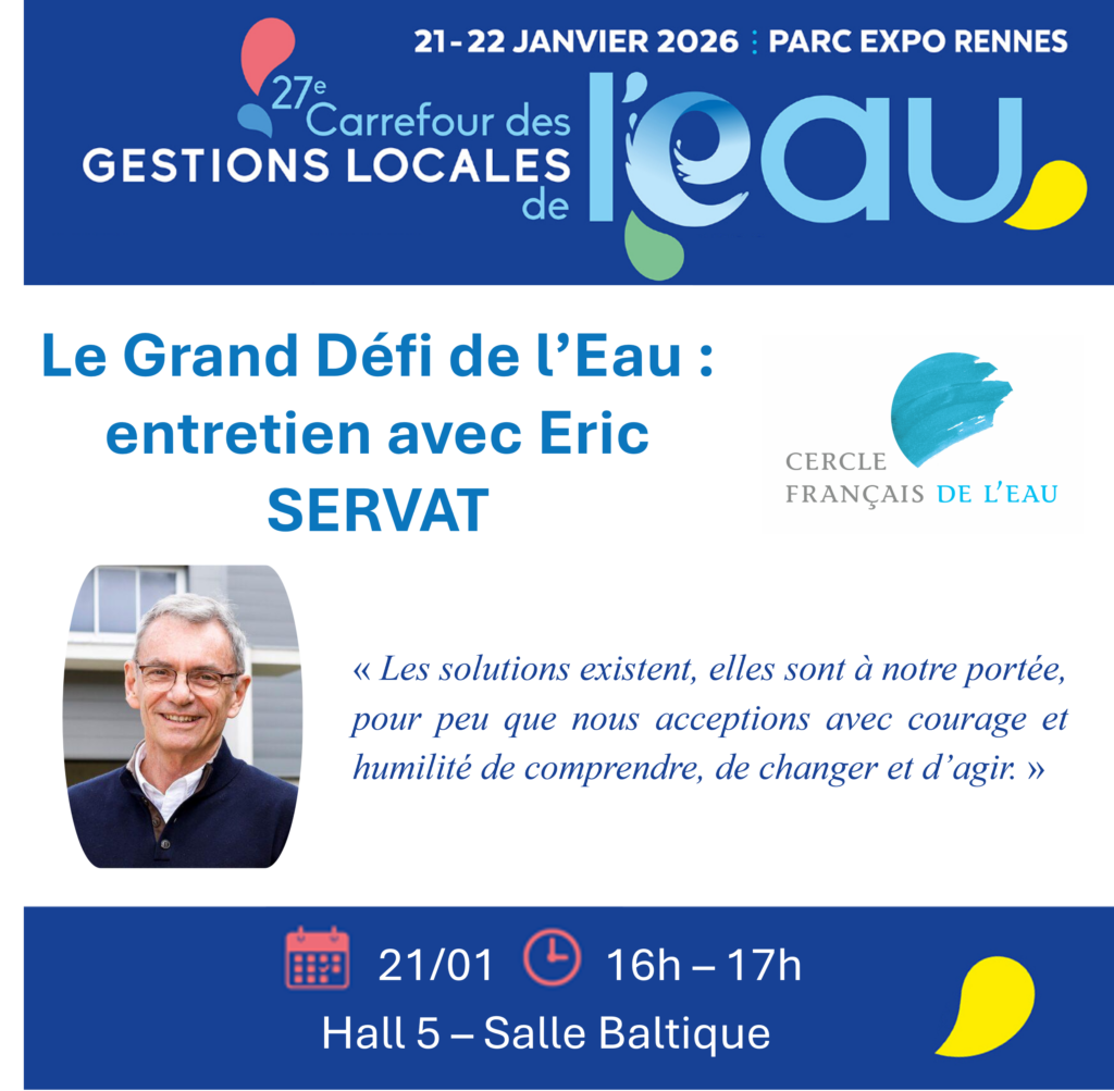 CGLE26 | Le Grand Défi de l’Eau : entretien avec Eric SERVATA rebours des discours anxiogènes sur l’avenir de l’eau en France, Eric SERVAT, hydrologue, analyse la nouvelle donne du climat comme une invitation au changement, à la transformation, et donc à l’action. Grâce à l’« intelligence collective », à la volonté de rendre à l’eau toute sa place dans notre société, à l’apport de la science et à une vision profondément humaniste, il viendra nous démontrer que, face à l’urgence, la raison, l’espoir et la volonté feront la différence.